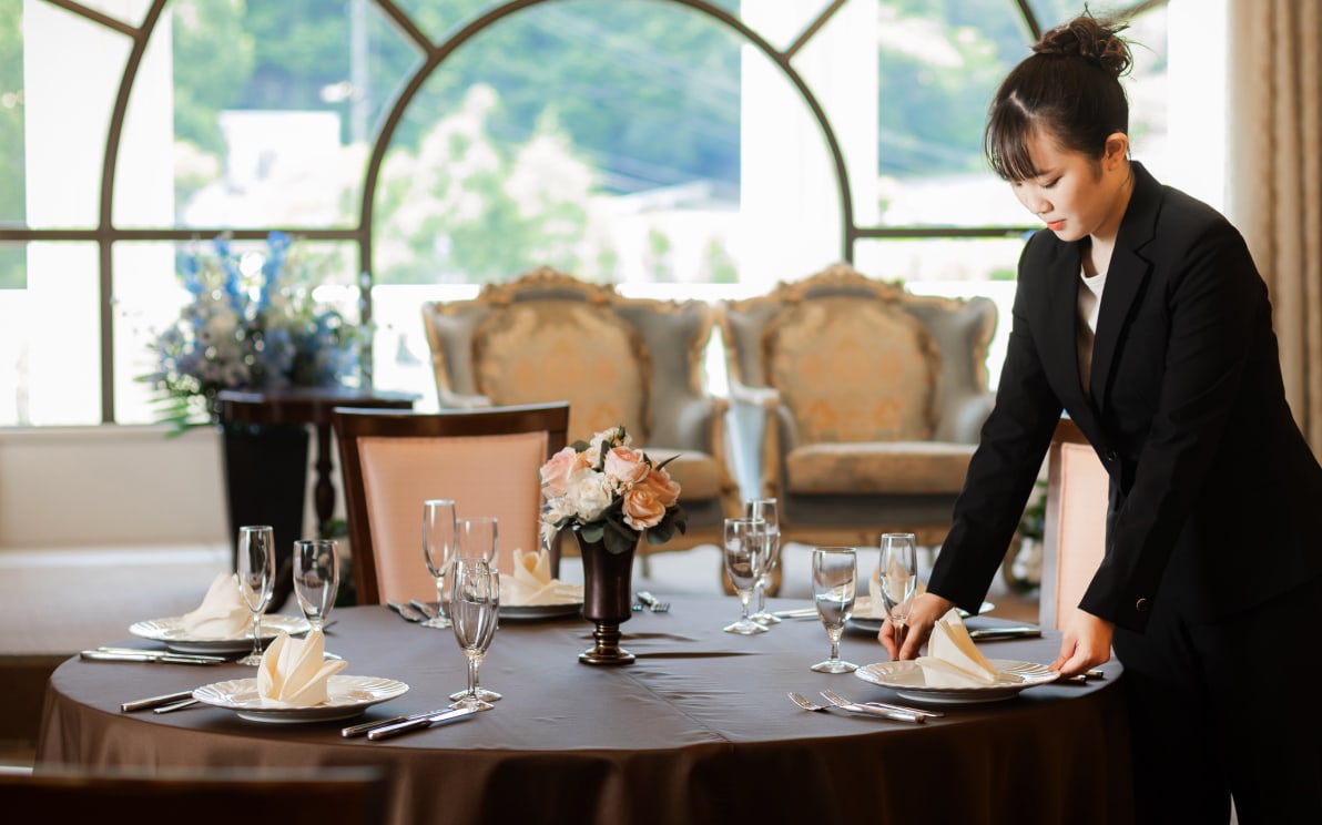 場の設営、料理のサービス、ゲストの案内などを行います。新郎新婦とゲストの笑顔を引き出すため、温かいおもてなしを提供し、特別な一日を華やかに演出します。